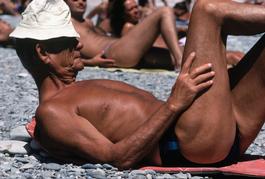 FRANCE. Cote D'Azur. The Fine Art of Sunbathing. Leisures activities on the beach. 1992.