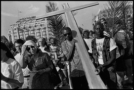 FRANCE. Paris. 1997. During the World Youth Day, a way of the cross, organised by the Church of St-Eustache, crosses the Seine.