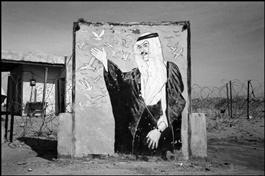 IRAQ. Inside Iraq. He had lost the war, his army was torn to pieces, his country destroyed. He was still saluting. Peacedoves hovering around him. 1991.