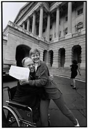 USA. Washington, D.C. 1999. Demoratic Senator Max CLELAND from Georgia with a collegue. An explosion in the Vietnam War blew off both of his legs above the knees and one of his arms.