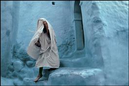 Street life in the Rif mountains. Walls are often painted in blue and white.