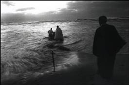 SOUTH AFRICA. Cape Town. 1999. Every Sunday, at dawn, priests of a Zion Church, from the Khayelitsha black township, take their newly converted congregation to the sea to be baptised through immersion.