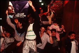 Crowds celebrating the election of President Francois MITTERRAND to another term in office.