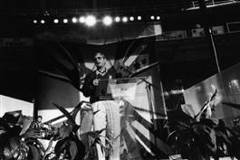 USA. Washington D.C. 1996. Preaching is followed by live music at a conference of Promise Keepers attended by 65000 inside the RFK stadium. An exclusively male organisation, Promise Keepers honor God, Jesus and the Bible. They help each other keep promises to be good fathers and faithful husbands. They do not have a political agenda...yet.