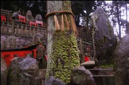 At the Inari Taisha shrine, a sacred rope called "shimenawa" marks the presence of a "kami" a deity embodied in stone.