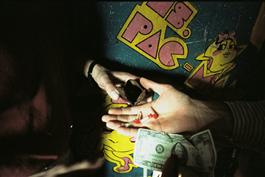 USA. New York City. East Harlem. 1989. Vials of crack are sold from the neighborhood "game room."
