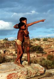 Kaga Kama reserve. Two young girls inspect their surroundings....