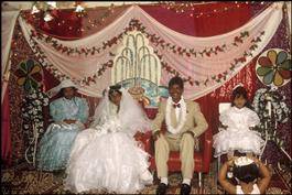 MAURITIUS. Port Louis. 1992. Muslim wedding couple at ceremony.