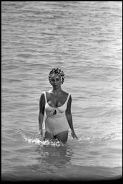 SPAIN. Sagaro. 1959. Twenty-five-year-old Elizabeth TAYLOR on the set of "Suddenly Last Summer", in which she co-stars with Katharine Hepburn and Montgomery Clift. It is Taylor's first film after the death of her 3rd husband, Mike Todd, in a plane crash. Just months after Todd's death, Taylor married Eddie Fisher and found herself at the center of a scandal. It was a place that would become familar for her, though never comfortable, for the next 30 years.