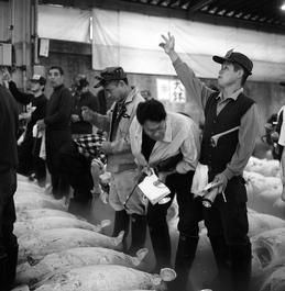 JAPAN.Traders buy tuna fish at Tokyo fish market. 1997.