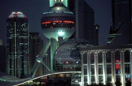 CHINA. Shanghai. Huang Pu River and the Oriental Pearl TV Tower . 2000.