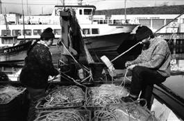 FRANCE. Morbihan. Belle-Ile-en-Mer. Des métiers et des femmes. Nathalie BODOLEC, marin pêcheur. Pêche aux pousse-pieds.