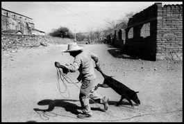 MEXICO. State of Guerrero. Village of San Augustin de Oapan. 1983. A man drags a reluctant pig in midday.