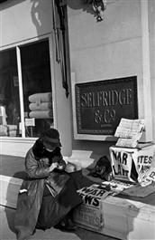 G.B. London. Westminster. News vendor outside Selfridges. Life...
