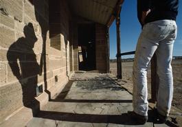 AUSTRALIA. The Dingo Fence is a pest-exclusion fence that was built in Australia during the 1880s and finished in 1885, to keep dingoes out of the relatively fertile south-east part of the continent (where they had largely been exterminated) and protect the sheep flocks of southern Queensland. At 5353 miles long it is one of the longest structures in the world. The deserted court house in the deserted settlement of Milparanka, south of Tibooburra. 1984.