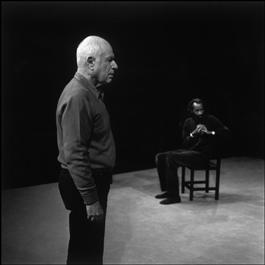 FRANCE. Paris. 10th arrondissement. Theatre des Bouffes du Nord. British director Peter BROOK during the rehearsal of "Qui est là", in the background Malian actor Sotigui KOUTAYE. 1995.