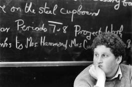 GB. ENGLAND. Hertfordshire. Hatfield Comprehensive. A fifth-form remedial English class. 1984.Founded as a technical high school in 1953, the school became a mixed comprehensive in 1971. The pupils across the ability range average three O-levels each, although a few gain eight or more, and the sixth form averages 2.2 A-levels. On average half the year leave at the age of 16 when they finish their compulsory education.