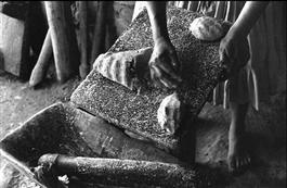 MEXICO. State of Guerrero. Village of San Augustin de Oapan. A young woman kneads corn dough to make tortillas. 1984.