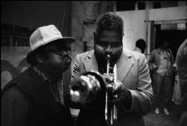 From left to right: the American jazz musicians Nat ADDERLEY (cornet) and Dizzy GILLESPIE (trumpet, vocals, percussion). Wednesday July 18th, 1984.
