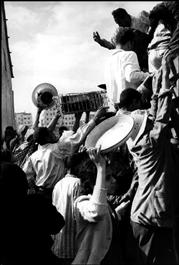 Hungry crowds raiding a truck load of fish, Port Said.