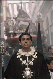 SPAIN. Sevilla. 1996. Holy week. Procession with Jesus on a float....
