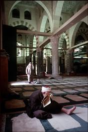 ISRAEL. Jerusalem. An old man reads from the Koran in the Al Aqsa mosque. 1991.