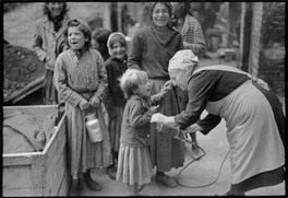 The DDT disinfection of refugees before being admitted to the camps.