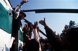 Nawaz SHARIF, leader of Pakistan Muslim league arriving at rally in Shargodah. 1996.