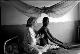 SUDAN. Akobo. 1998. A Belgian doctor attends to a sick patient...