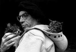 GB. England. Paul Gallico, writer. Photographed at home in Salcombe, Devon, with his cats. 1952.