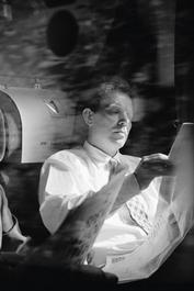 G.B. ENGLAND. MP Tony Blair, then head of the Labour Party, on board a train to London after leaving the Trades Union Congress (TUC) Conference in Brighton. 1995.