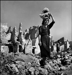 ITALY. Latium region. Village of Montecassino. Montecassino was the sight of one of the main battles fought by the Allies against the Germans in Italy (1944). The town was severly damaged, and the Medieval Abbey of Monte Cassino, which housed one of the main libraries from the Middle Ages, was completely destroyed during an air raid. August 1946.