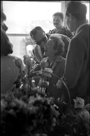 FRANCE. Paris. French singer Edith PIAF arriving at Le Bourget airport from New York, being greeted by her impressario Bruno COQUATRIX.