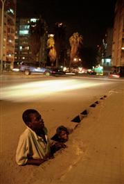 ANGOLA. Street Children in Luanda. Street kids come out from the sewer to the street at night. 1999.