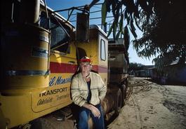AUSTRALIA. The Dingo Fence is a pest-exclusion fence that was built in Australia during the 1880s and finished in 1885, to keep dingoes out of the relatively fertile south-east part of the continent (where they had largely been exterminated) and protect the sheep flocks of southern Queensland. At 5353 miles long it is one of the longest structures in the world. A trucker stops in Tibooburra for a beer on his long journey south, next stop Broken Hill, 600 kilometers south. 1984.