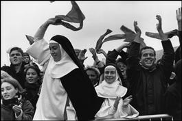FRANCE. Champagne-Ardenne region. Marne department. Town of Reims. September 22nd, 1996. Nuns and lay catholics greet the Pope, at the celebration of the baptism of Clovis.