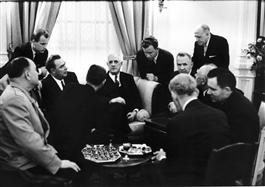 USSR. Moscow. Official trip of the French President DE GAULLE. Reception at the French embassy with Brezhnev 1966.