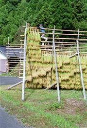 JAPAN. Shimane Prefecture. Hanging rice on a frame to dry. 2000....