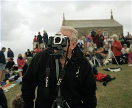 GB. England. Cornwall. People gather to watch the solar eclipse....