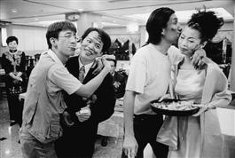TAIWAN. 1998. Guests turn rowdy and demand to kiss the bride and groom after the banquet in a Taipei hotel.