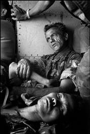 SOUTH VIETNAM. An Loc. American and South Vietnamese injured soldiers being carried by helicopter to a nearby medical center. 1972.