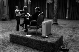FRANCE. Paris. François MITTERRAND posing for his bust by sculptor Daniel DRUET. Ninth sitting in the banquet hall, thursday October 6th 1983, between 11 am and 12.30 pm.