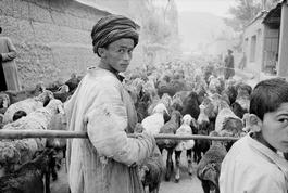 AFGHANISTAN. 1998. Summer herding of goats and sheep toward green pastures in the mountains.