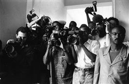 MALI. Bamako. Photographers waiting for the arrival of President Alpha Oumar KONARE who inaugurated the Festival. 1994.