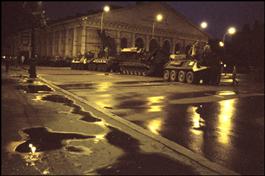 USSR. RUSSIA. Moscow. August 20th, 1991. Tanks blocking the streets...