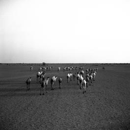 Sudan. Near the village of Mazrub a herd of camels in the desert, leave the Artesian wells after watering. North West Kordofan.
