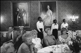 SOUTH AFRICA. Cape Town. Whites dining; black servants at a function in an expensive hotel. On the wall the portraits of the Earl and Countess of Athlone, a governor of the Union Of South Africa. 1999.