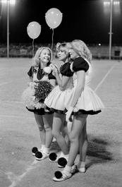 USA. ARIZONA. Tempe. Pom Pom cheer leaders prepare to support their college football team. Marcos de Niza High School. 1979.