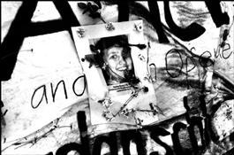 Solingen. The image of Hatice GENC attached to a banner at her house.
