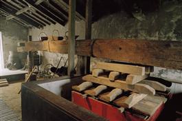 FRANCE. Aquitaine. Landes department. 1999. Old grape press in the Museum at Montfort-en-Chalosse.